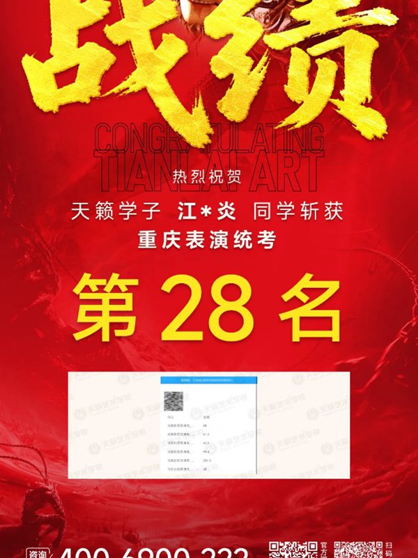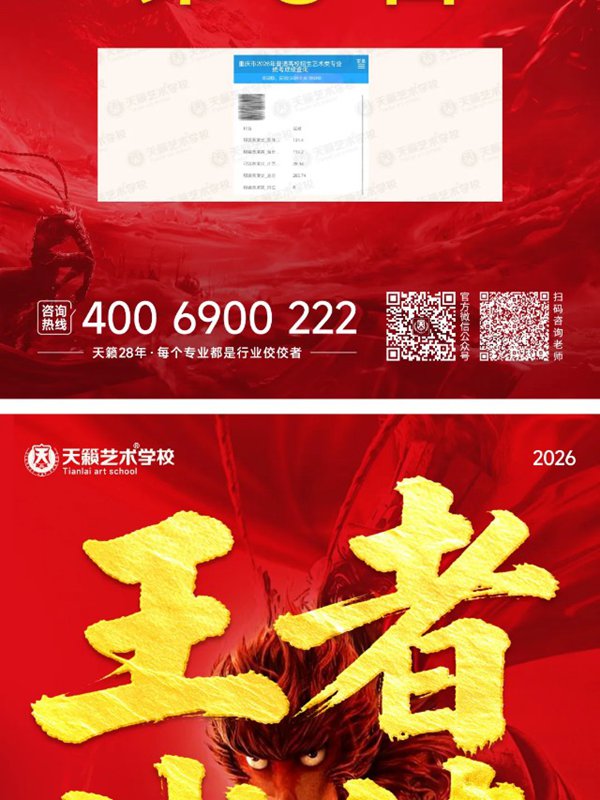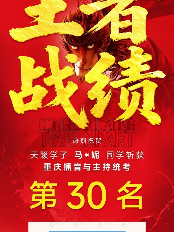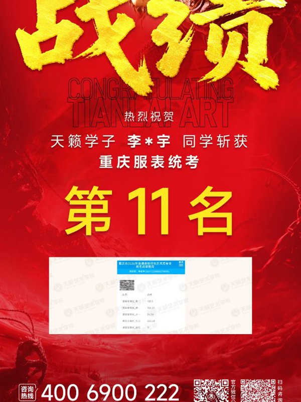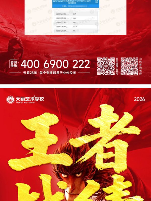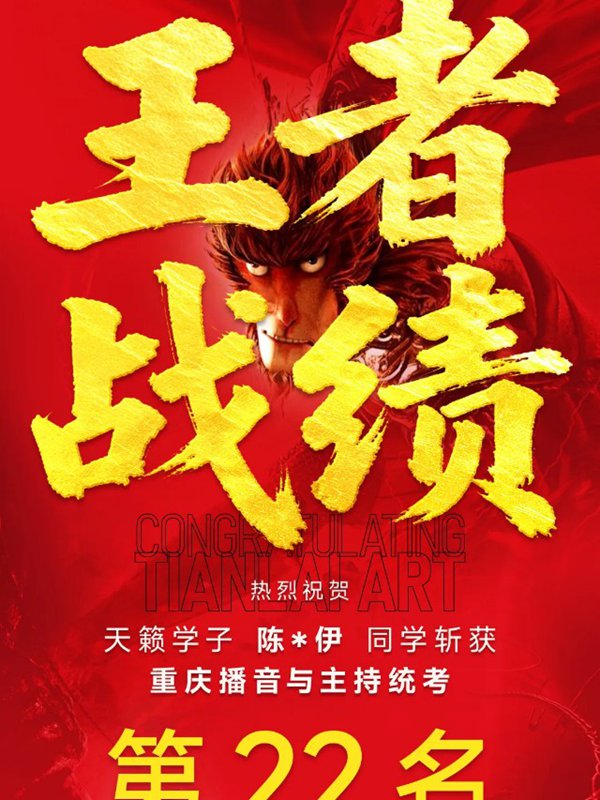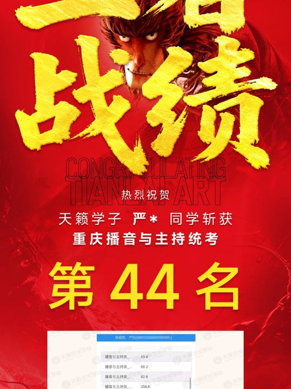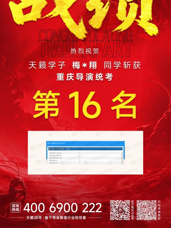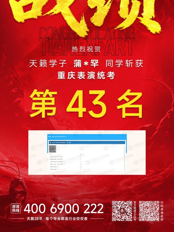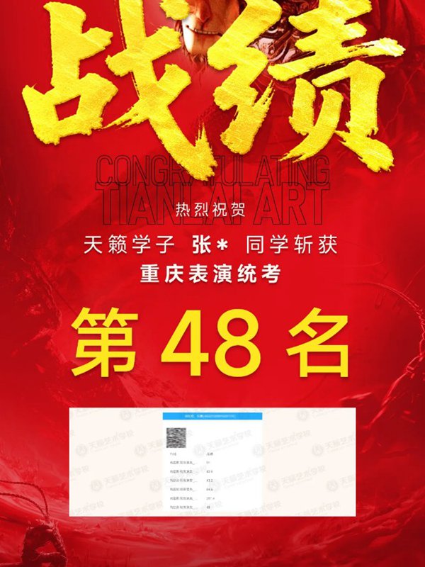 2026年重庆天籁影视传媒专业统考战绩闪耀,分别斩获重庆播音/导演第一名,播音/表演/服表第二名,导演第三名,实力定义行业巅峰!