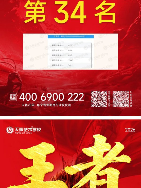 影视传媒统考捷报 | 热烈祝贺天籁艺术学校斩获播音/导演双第一 播音/表演/服表第二名 导演第三名 实力霸榜 再创辉煌!